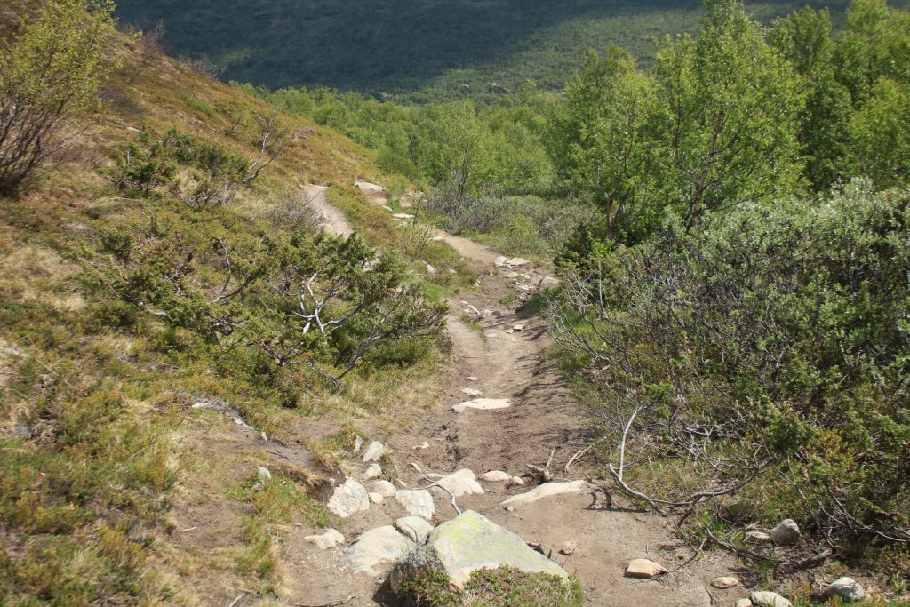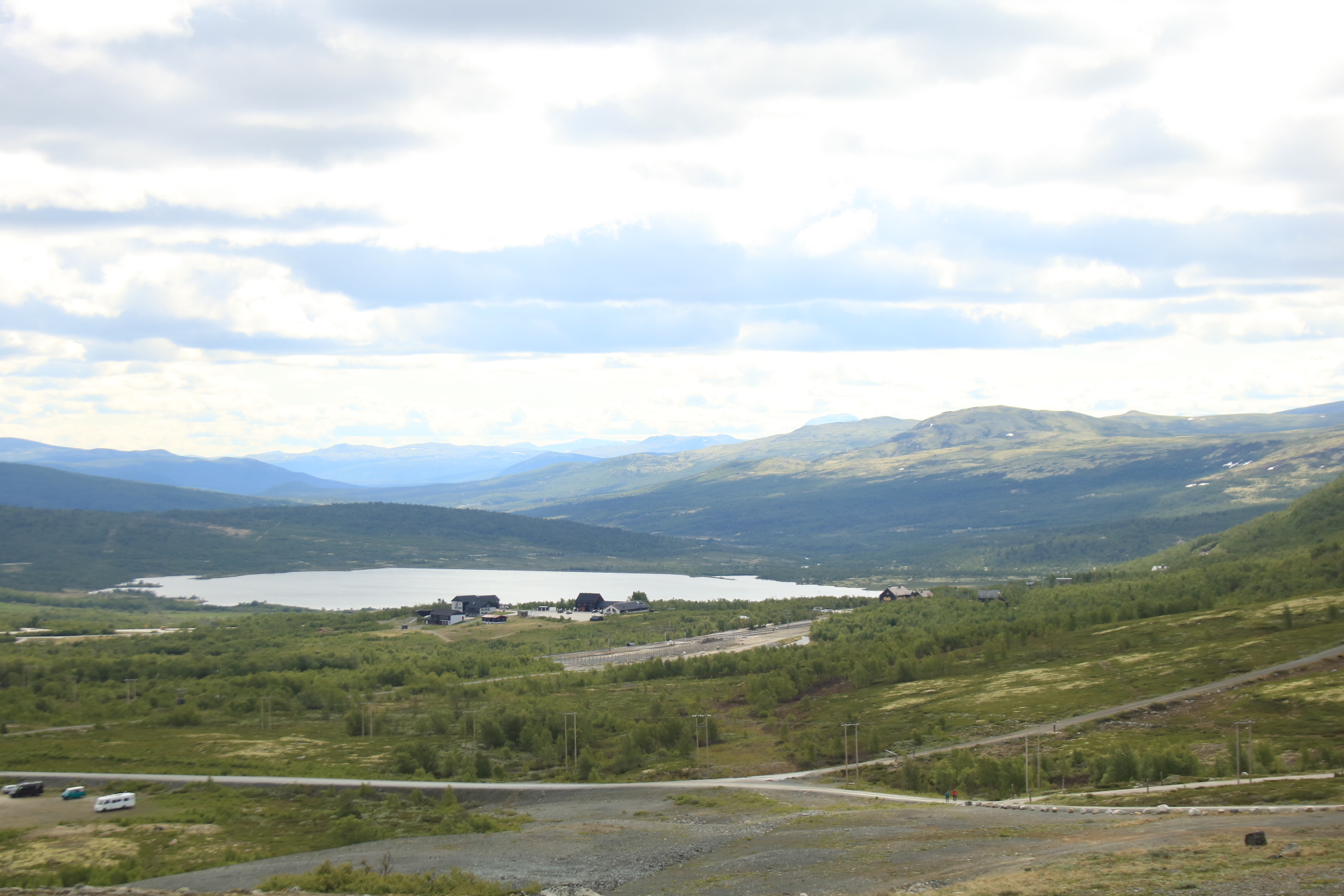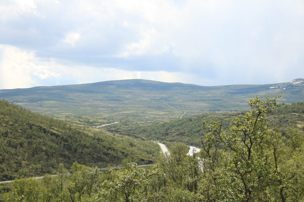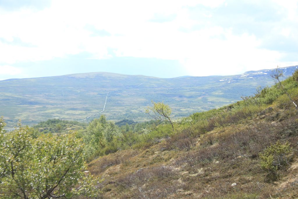 Weiter geht es nach Dombås zum ersten Kaffee. Wir wollten in die Kirche von Dombås, aber die war leider verschlossen. Weiter auf der E6 Richtung Kongsvoll Fjeldstue. Da sehen wir die nächste Elchkuh. Wir machen einen kleinen Abstecher nach Snøhetta. Oben am Snøhetta haben wir einen wirklichen fantastischen Blick zu genießen. Auf dem Parkplatz steht ein Wagen aus Deutschland mit fast identischen Kennzeichen wie unseres, nur die Zahlenfolge war anders. Die Welt ist so klein. Hier ging auch noch ein Wanderweg zu einer Hütte. Das haben wir dann aber gestrichen, weil der Winde extrem stark und eisig war.