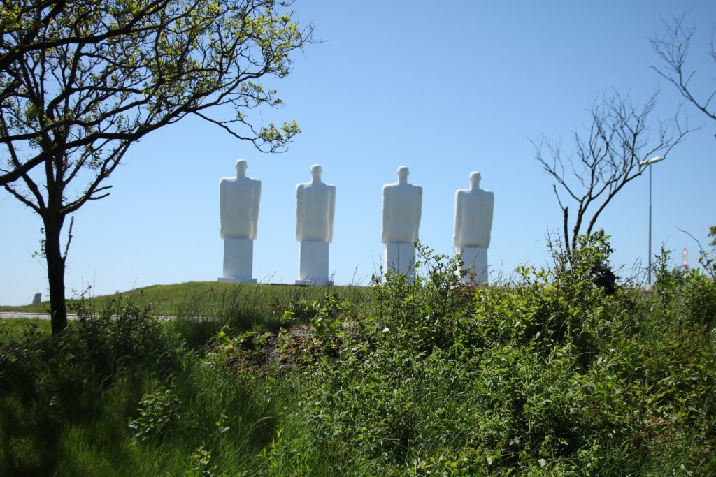 Heute haben wir Esbjerg besucht, die 5. größte Stadt des Landes. Die Meinung meines Bruders musste ich überprüfen 😉 er fand die Stadt nicht so prickelnd. Wenn man diese Stadt mit Ribe vergleicht, hat er recht. Aber Ribe ist alt und Esbjerg entstand erst nach dem deutsch – dänischen Krieg, weil die Dänen danach keinen Nordseehafen mehr hatten. Also eine recht junge Stadt. Hier gibt es aber auch einen sehr schönen und interessanten Altstadtkern, schöne Parkanlagen, die längste Einkaufsstraße in Dänemarks. Den Wasserturm, erbaut 1897, das alte Rathaus, die Skulptur „Der Mensch am Meer“. Die Stadt hat was. Was mir bisher auch in Dänemark aufgefallen ist, es gibt in den Innenstädten keinen Leerstand, wie es z.B. in München und Rosenheim zuhauf gibt. Es gibt auch nicht wie bei uns immer und immer gleichen Läden (H&M, Zara, Depot, etc.). Hier gibt es wirklich noch individuelle Geschäfte, das trägt auch zu dem Charm der Städte bei. Ein extrem gut ausgebaute Fahrradwegenetz trägt ebenfalls dazu bei. Menschen mit Bewegungseinschränkungen haben kein Problem mit Rollstuhl, Rollator oder sonstigen Gehhilfen sich uneingeschränkt fortzubewegen. Bei uns leider nicht denkbar. Hier sollte man sich mal was wirklich Gutes abschauen! Aber ich bin abgedriftet. 😉