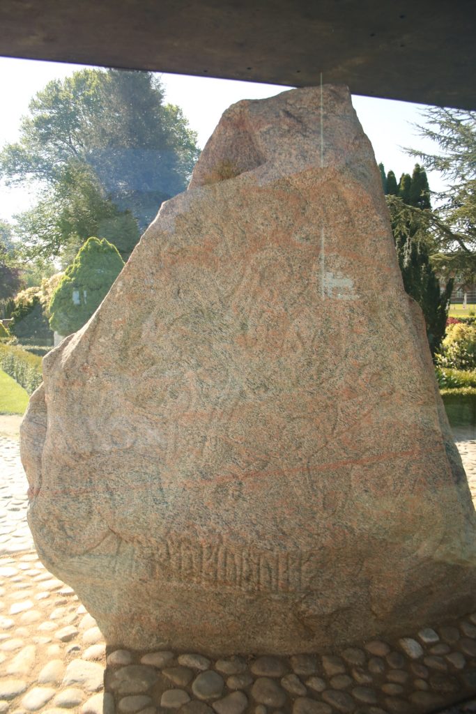 Was macht Jelling so besonders? Jelling (externer Beitrag) wird zum einen als Geburtsort Dänemarks bezeichnet und zum anderen als der Ort an dem Dänemark christlich wurde. Hier befinden sich zwei Runensteine: Der Runenstein von Gorm dem Alten und Harald Blauzahn, seinem Sohn. Die Rune von Gorm ist von 950. Die Inschrift lautet „König Gorm errichtet dieses Denkmal für Thyra seine Frau, die Stärke Dänemarks.“ Die Rune von Harald ist die größte Rune der Welt und eine sehr wichtige. Die Inschrift lautet: „König Harald gebot, dass dieses Denkmal seinem Vater Gorm und seiner Mutter Thyra gemacht wurde; der Harald, der sich ganz Dänemark und Norwegen gewann und die Dänen zu Christen machte.“