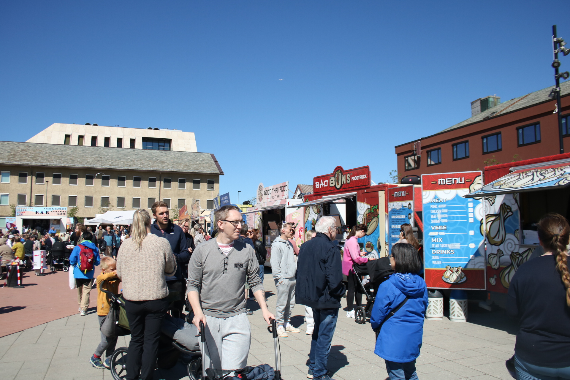 Raus aus den Federn, die Sonne scheint 😉 Das Wetter müssen wir ausnutzen. Unser Ziel, die Kulturhauptstadt 2024, Bodø. Auf der Fahrt wurden wir wieder kurzzeitig durch das Radrennen ausgebremst. Diese Stadt pulsiert. Es gibt sehr viele Hochhäuser, aber die Skandinavische Architektur macht aus Hochhäusern Blickfänge. Schräg, verwinkelt einfach anders als bei uns. Sogar Balkone, die diese Bezeichnung wert sind, hat man hier bedacht. Kein Austritt, der bei Schuhgröße 42 schon zu klein wird 😉. Erst sind wir entlang des Kais geschlendert. Haben das Hurtigruten Schiff gesehen (nicht das Postschiff). Einem alten Segelschiff beim Auslaufen zugeschaut, einen Seeadler bewundert und einfach die Atmosphäre genossen. Am Wasser war der Wind doch noch ganz schön frisch, aber die Sonne machte heute alles wett. Weiter am Kai entlang, trafen wir auf den Stadtlauf. Am Kai gibt es auch die Möglichkeit Saunen zu besuchen. Dann einen Schwenk in die Innenstadt. Dort gibt es sehr viele nette Cafes, Bars und Restaurants. Ein Einkaufscenter das richtig schön gestaltet ist. Mit Zwischenstockwerken, verbunden durch wunderschöne Holztreppen, tipp top gepflegt. Eine Kirche mit abseitsstehendem Glockenturm war natürlich mein nächstes Ziel. Aber leider wieder Pech, wir durften nicht hinein, da eine Trauung kurz bevorstand. Okay, abbiegen und weiter. Oh, das hatten wir doch schon in Schweden. Ein Food Truck Festival 😊 Erst einmal schauen, was es alles gibt. Da wir einen leichten Hunger verspürten und wir unsere Wegzerrung schon weg gefuttert hatten. Wir haben uns für eine Ofenkartoffel entschieden. Eine Kartoffel für uns Beide! Eine Kartoffel mit Pulled Pork, gerösteten Zwiebeln, Gurke und Raclettekäse 17€…. Den Goldstaub habe ich nicht gefunden 😉. Aber es war sehr lecker. Wir ließen uns einfach weitertreiben. Irgendwann waren wir dann doch ziemlich platt. Die Temperaturschwankungen schaffen einen dann doch ganz ordentlich.