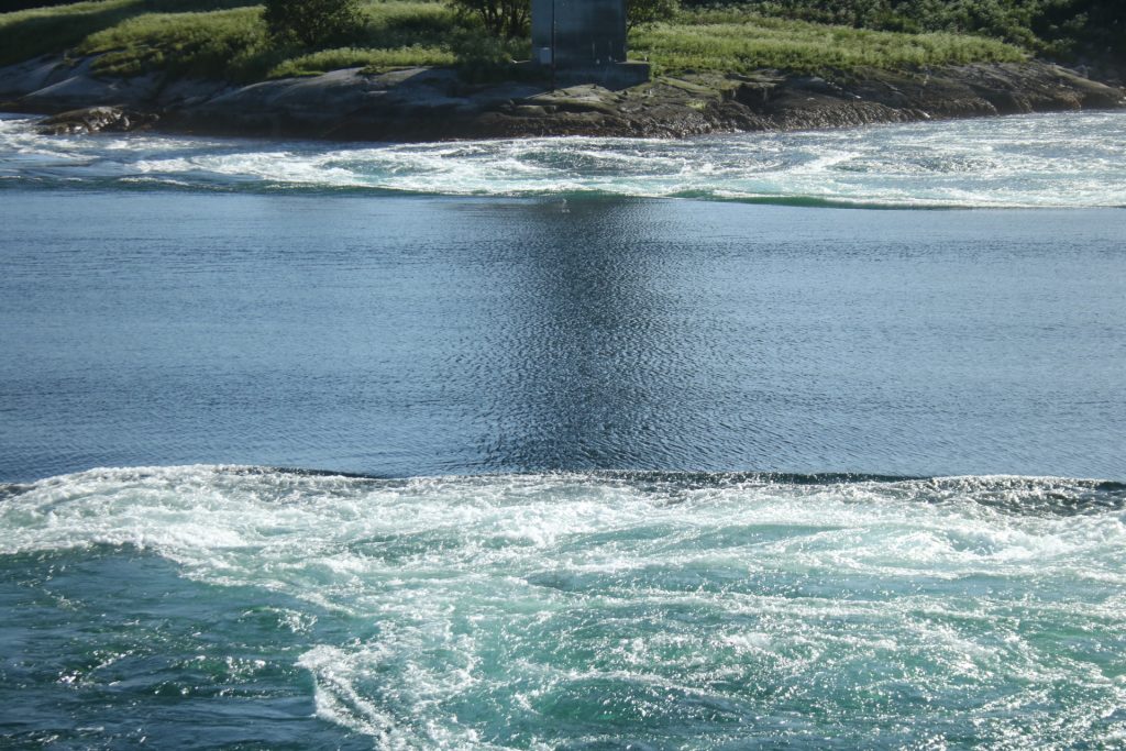 Also zurück zum Wohnwagen. Nach einem belebenden Kaffee habe ich dann Hausputz gehalten und Tim hat den Wohnwagen und das Auto vom gröbsten Schmutz befreit. Da es so schön und windstill ist, haben wir uns entschlossen, nochmals zum Saltstraumen zu gehen. Auf dem Weg dorthin haben wir dann auf einem Hausdach Möwenjunge entdeckt. Auf dem Fluss waren Adventureboote unterwegs, mit denen man in die Strudel fahren kann. Nix für Elke. Kostet auch einen Haufen Geld. Jetzt werden wir den Rest des Abends außerhalb unseres Hauses verbringen, bevor es morgen weiter geht.