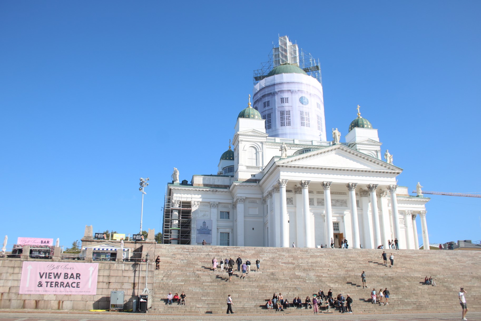 Im Hafen angekommen, ist das Menschenaufkommen wieder riesig. Es ist ein Kreuzfahrtschiff angekommen und zudem ist Schulschluss. Wir wollen dem Rummel entgehen und wandern etwas abseits der Touristenwege. Dabei entdecken wir wunderschöne alte Häuser, kleine Cafes und Restaurants. Ungewollt kamen wir zum Kamppi. Kamppi ist vieles auf einmal. Es ist ein Wohnkomplex, ein Bürogebäude, ein Shoppingcenter, Fresstempel, Metrostation und Busbahnhof. Natürlich mussten wir die 5 Etagen des Shoppingcenters erkunden. Eine Etage wird nur von Muji, das erste in Finnland. Neben seinem normalen Sortiment kann man dort auch Lebensmittel kaufen oder essen. Ich kam aus dem Staunen nicht mehr raus. Wieder raus aus dem Gebäude standen wir vor der Kamppi-Kapelle-der-Stille. Wir sind nicht rein, da sie 5 € dafür haben wollten. Wenn man in Helsinki jede Kirche besuchen will, ist man danach bankrott.