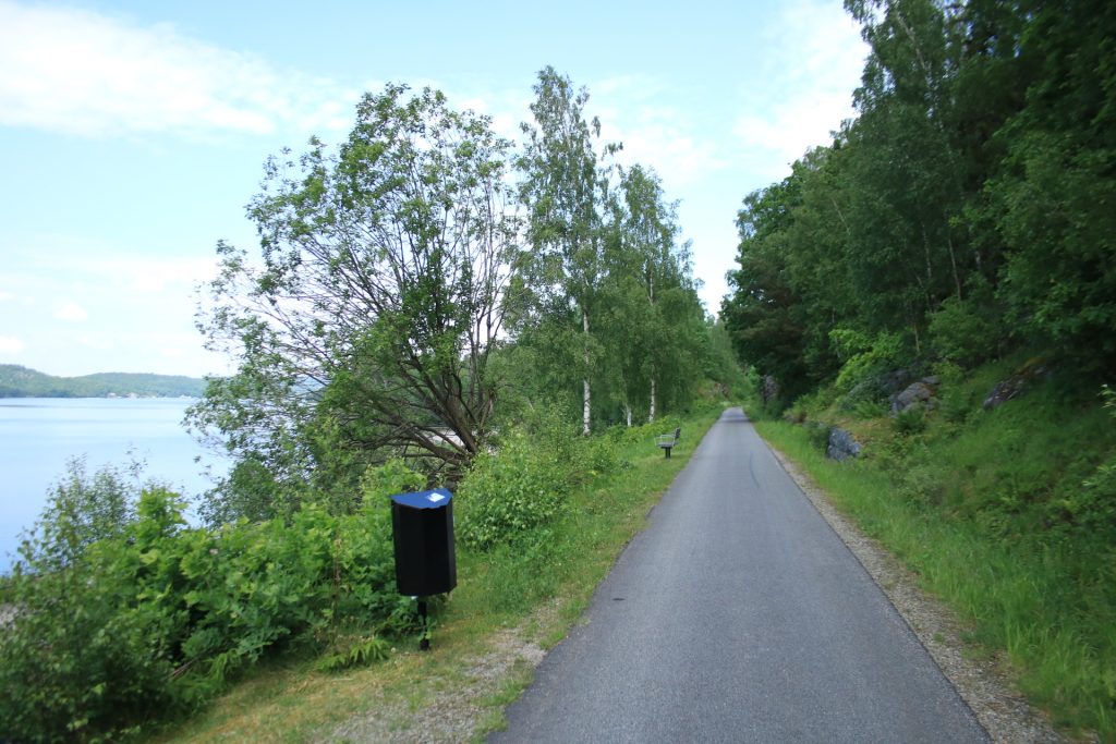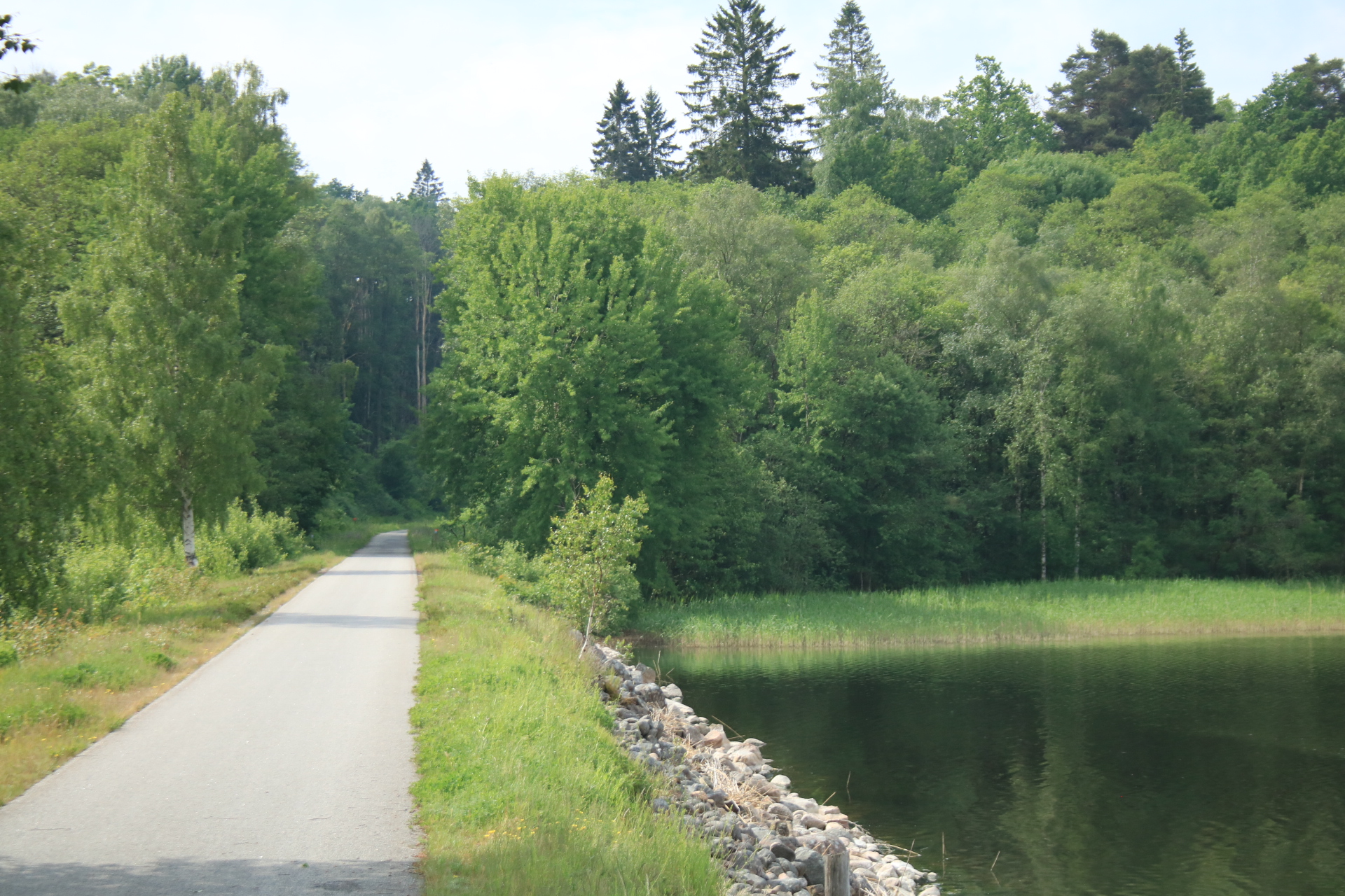 Juhu, Sonnenschein. Aber das heißt ja nichts. Aber wir brechen auf zur Fahrradtour. Gewappnet mit Regencaps und Nahrung ging es los. Von unserem Campingplatz über die stillgelegte Bahntrasse, entlang des Åsunden Sees, durch Wälder Richtung Vegby. Dort führte der Weg weiter entlang des Sämsjön. Mehr Natur geht schon fast nicht mehr. Alle paar 100 Meter stehen Bänke, meist auch mit Tischen zum Verweilen mit Blick auf die Seen. Bewundernswert finden wir, dass man nirgendwo auch nur ein Stück Müll findet, obwohl es kaum Mülleimer auf der Strecke gibt. Es geht also mit der Eigenverantwortlichkeit. Vereinzelt kamen uns Radfahrer oder Walker entgegen. Die Freundlichkeit hier ist auch sehr groß, jeder grüßt. Von Vegby aus sind wir noch einige Kilometer Richtung Tranemo gefahren. Zurück in Vegby wollten wir noch nach Hofsnäs, einem Gehöft, das ein Cafe beherbergt mit Kaffee und Kuchen 😉.