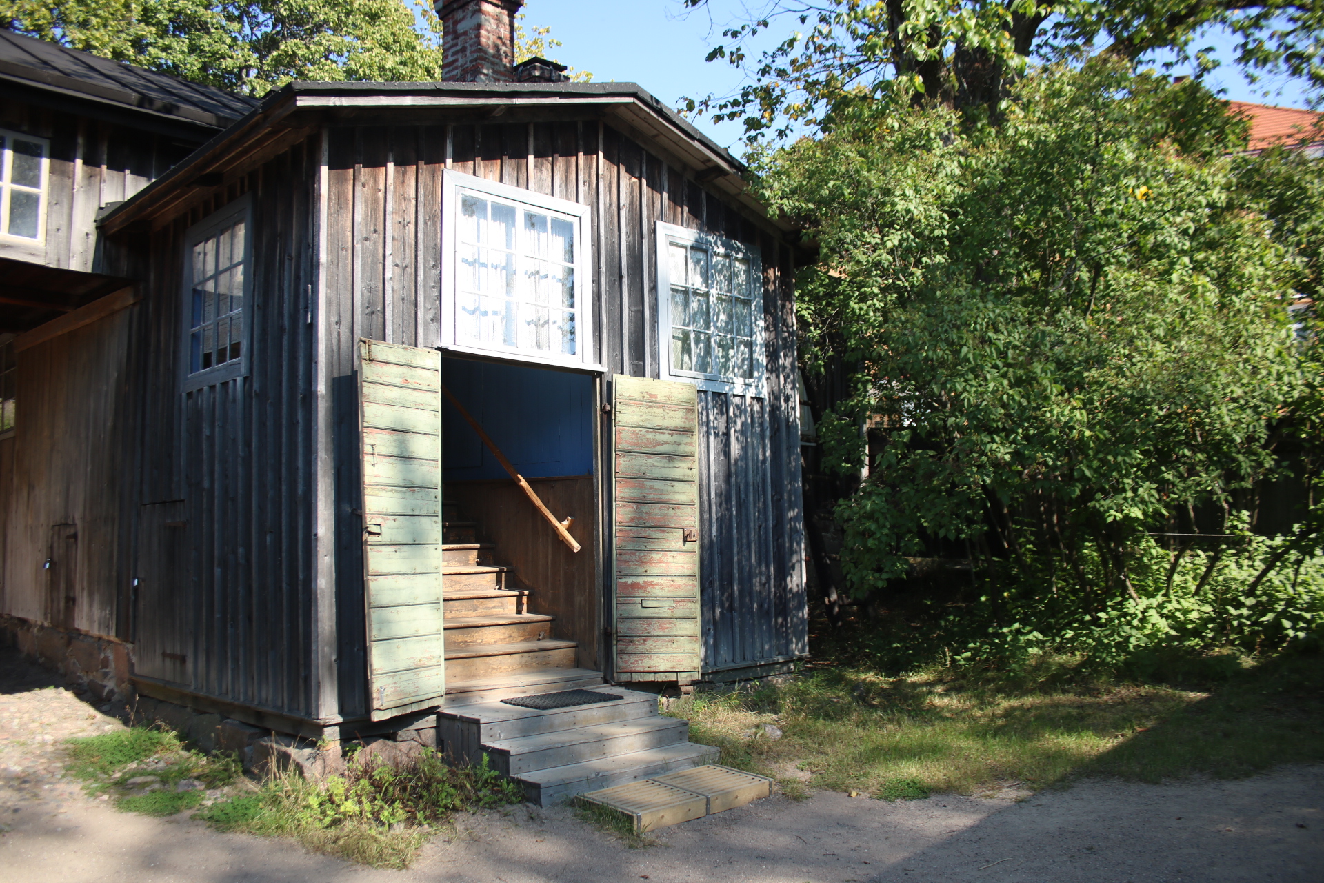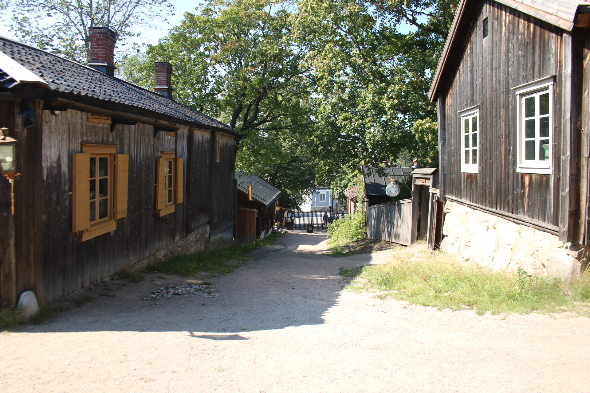 Auf geht´s nach Turku. Tim hatte schnell rausgefunden, dass man mit dem Bus gut hinkommt. Alle 10 Min. Fahrt ungefähr 50 Min. für 12€ hin und zurück für 2 Personen. Damit komme ich nicht mal einzeln nach München. Schön direkt in der Innenstadt konnten wir dann auch loslaufen. Schnell noch einen Kaffee geholt, die Googletante angeschmissen und auf zum Freilichtmuseum. Wir haben auf dieser Reise schon einige besucht und auf unseren vergangenen Reisen auch, aber das war das „geilste“ überhaupt. Luostarinmäki: Das Gelände umfasst 14 Innenhöfe mit ca. 80 Innenräumen. In fünf sind Themenstellungen und man bekommt vom Personal, in ursprünglicher Arbeitskleidung, alles erklärt. Das in die Häuser kommen, ist für Menschen über 160 cm schon sportlich, hohe Schwellen, niedrige, nein sehr niedrige Türen. Allein von außen ist das Ganze schon ein toller Anblick. Traditionelle Gildezeichen weisen auf, Schumacher, Uhrmacher, Bäcker, Schneiderei etc. hin.